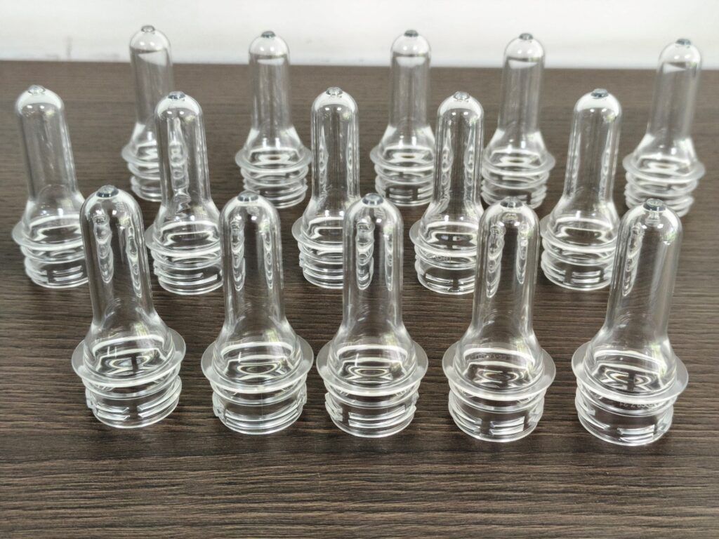 Для виробництва преформ використовується спеціальне інжекційно-литтєве обладнання. Розплавлений гранульований ПЕТ матеріал впорскується у форму під високим тиском. Після охолодження отримуємо готову преформу. На цьому етапі важливо контролювати якість, адже вона безпосередньо впливає на міцність та прозорість майбутньої пляшки.