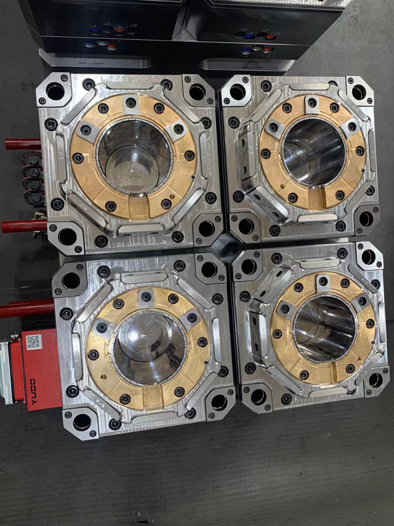 - Розміщення в прес-формі – За допомогою спеціалізованого робота-маніпулятора, який працює з високою точністю, підготовлена етикетка розміщується всередині відкритої прес-форми для лиття. Вона фіксується в потрібному положенні за допомогою вакууму або статичної електрики в пуансоні прес-форми.